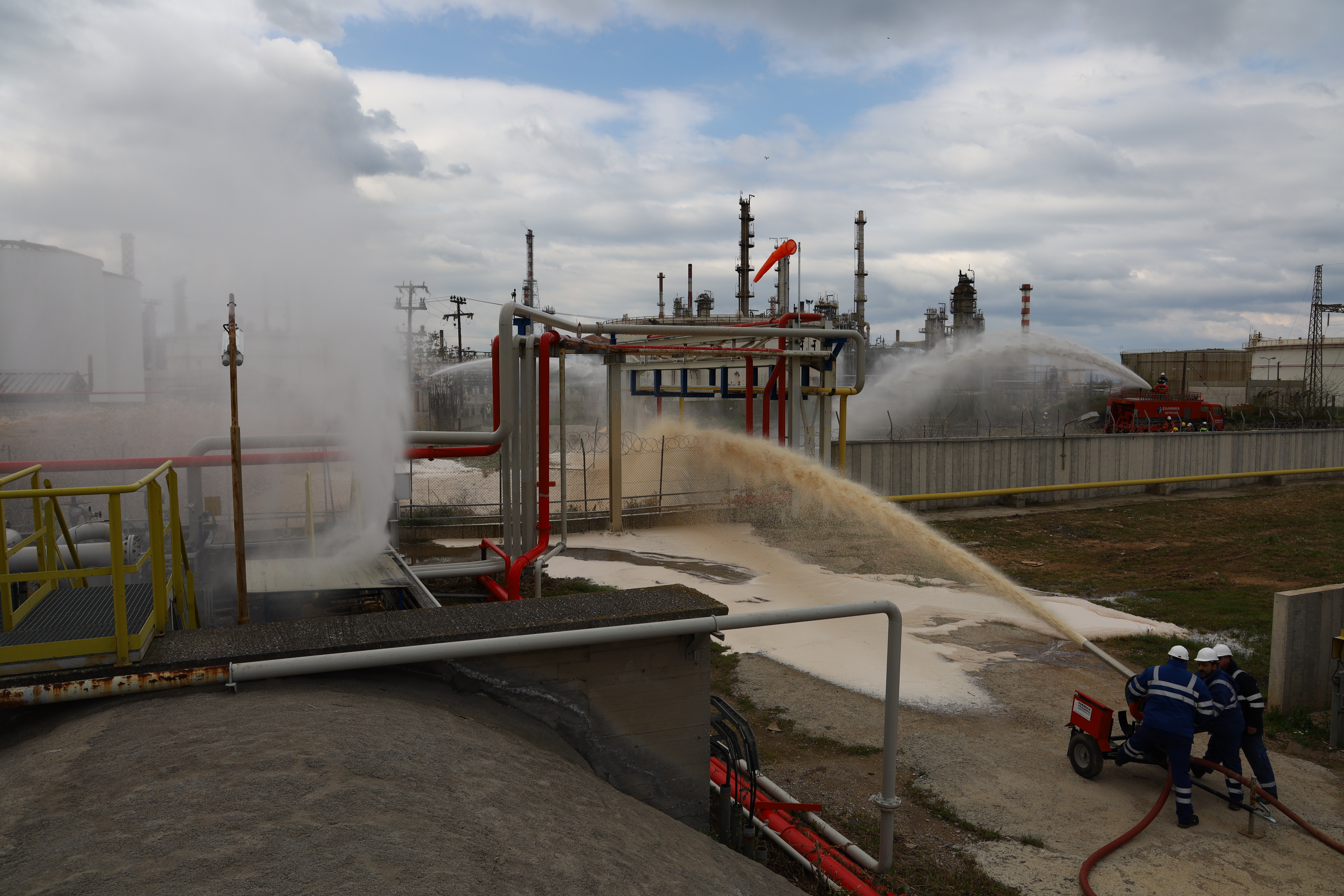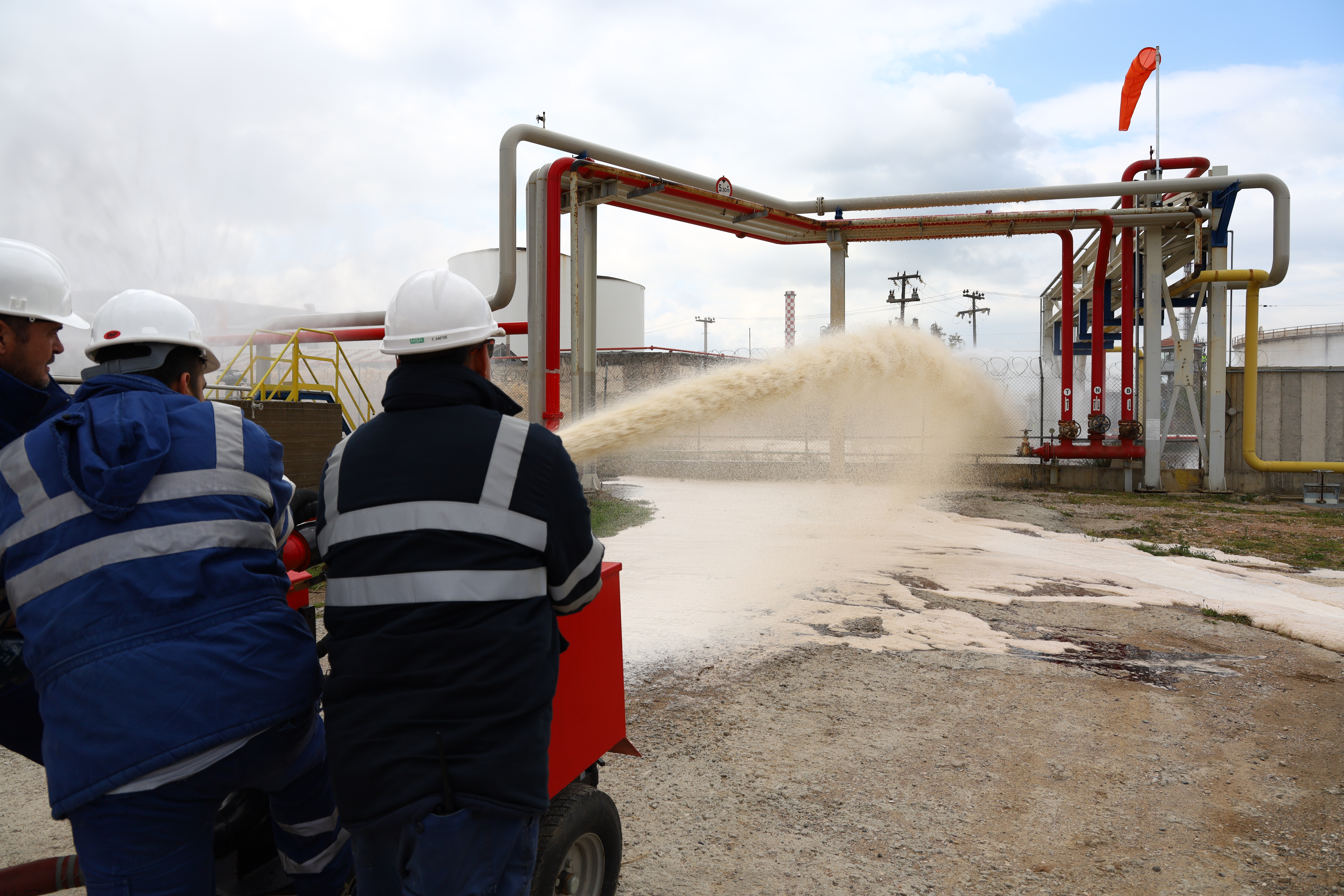 Άμεσα κινητοποιούνται από το Ε.Σ.Κ.Ε. οι πυροσβεστικές δυνάμεις και επιχειρούν μαζί με τις ομάδες πυρασφάλειας των ανωτέρω εγκαταστάσεων για την κατάσβεση της πυρκαγιάς, την ψύξη των δεξαμενών και των σωλήνων, από τους οποίους διέρχονται καύσιμα και τη διάσωση των τραυματιών. Παράλληλα, ο επικεφαλής των πυροσβεστικών δυνάμεων στο σημείο, ενημερώνει για το ενδεχόμενο εκδήλωσης Βιομηχανικού Ατυχήματος Μεγάλης Έκτασης (Β.Α.Μ.Ε.), ώστε όλοι οι εμπλεκόμενοι φορείς να βρίσκονται σε ετοιμότητα για την ενεργοποίηση των ειδικών Σχεδίων Αντιμετώπισης Τεχνολογικού Ατυχήματος Μεγάλης Έκτασης (Σ.Α.Τ.Α.Μ.Ε.).
